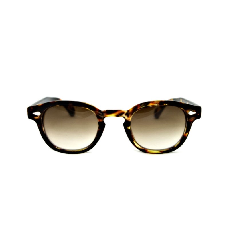 Occhiali in plastica riciclata, colore Havana, filtri marrone sfumato.