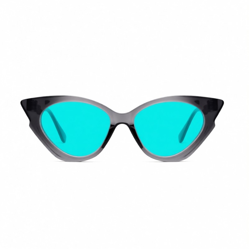Occhiali in Acetato Italiano, colore Trasparente/Nero/Tortoise/, filtri Interi Acqua Marina - Sfumati Grigio/Brown base 2 piatti.