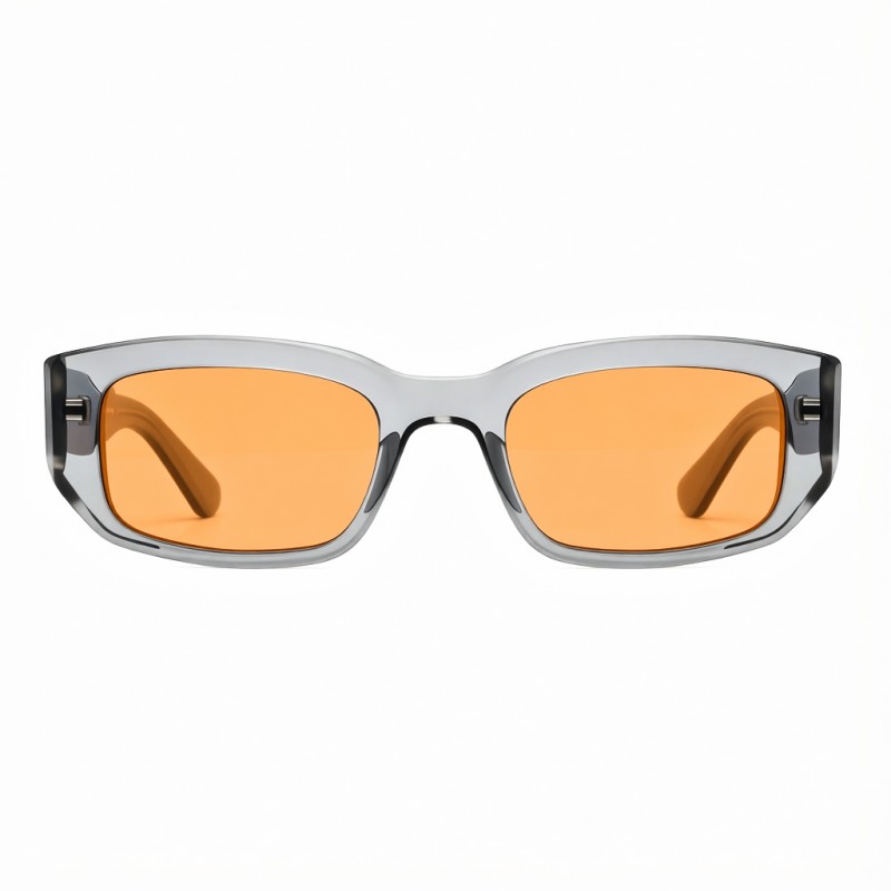 Occhiali in Acetato Italiano, colore Miele/Nero/Grigio-Trasparente, filtri Denim intero/Grigio Sfumato/Pesca intero base 2 piatti.