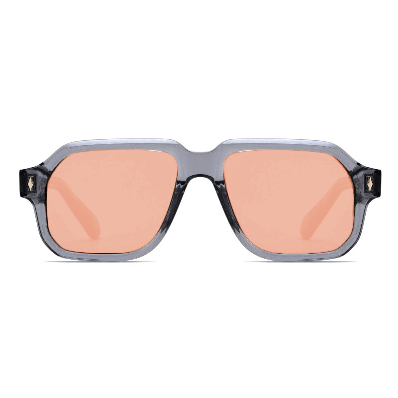Occhiali in Acetato Italiano, colore Grigio-Trasparente/Nero, filtri interi Rosa Cipria/Marrone chiaro base 2 piatti.